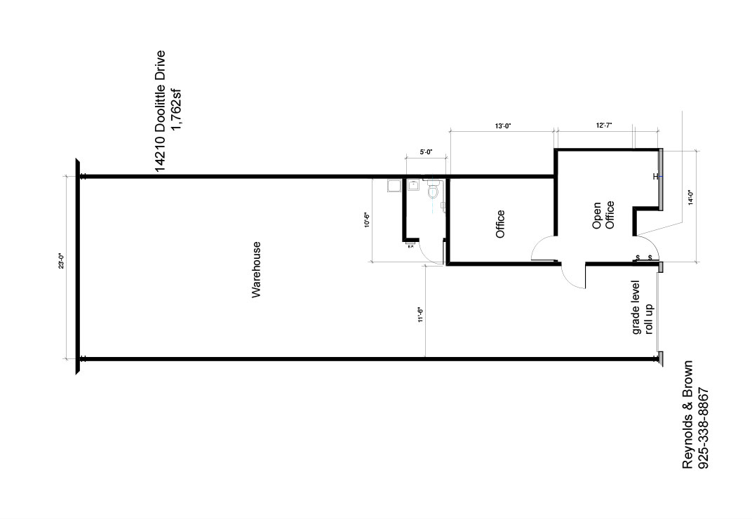 Small warehouse space with reception area and 1 private office. The warehouse has a front loading grade level drive.